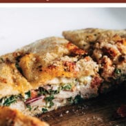 This one goes in my personal sandwich hall of fame. We threw together a video of this sandwich on a whim a few months ago and it’s now up to 4 million views, so apparently it’s not just me that likes the bite of red onion with pesto mayo, juicy tomato, turkey, and greens on pillowy sun-dried tomato focaccia in a huge, heavily sauced handheld form.